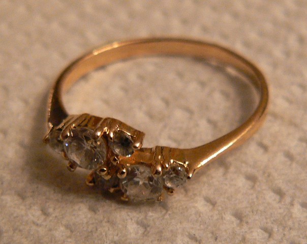 Bague plaquée or (poinçon visible) 2 zirconiums de 4mm (couleur diamant) 4 zirconiums de 2mm (couleur diamant) Cette bague peut être idéalement accompagnée par la bague plaquée or avec saphir : cliquer ici Taille : 54